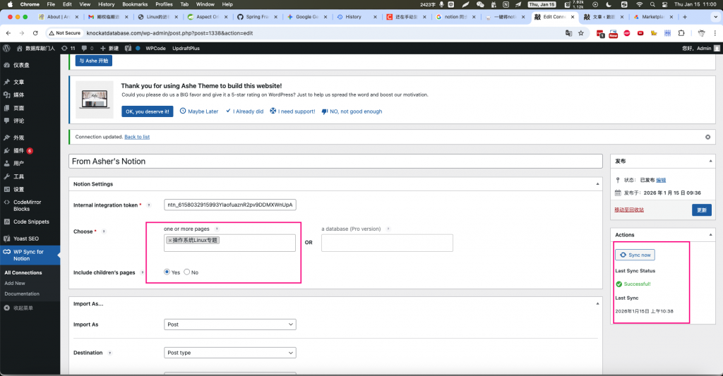 你目前使用的是哪款同步插件?(例如 WP Sync for Notion 或 WP Integration for Notion)我可以根据插件名看看有没有特定的调试开关。